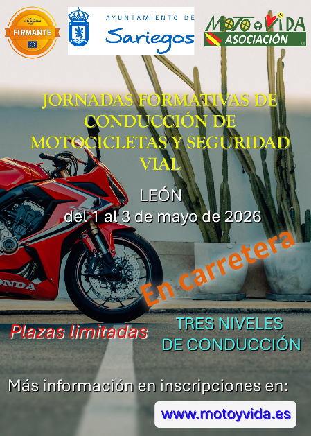 Por primera vez, en León, vamos a impartir un curso de conducción segura de motocicletas en las fechas del 1 al 3 de mayo de 2026.