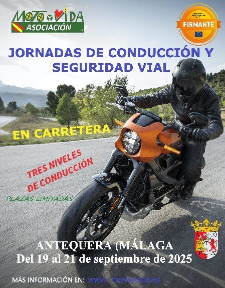 Este nuevo curso se impartirá en las fechas del 26 al 28 de abril de 2024 en Antequera (Málaga). Las clases teóricas se impartirán en un aula cedida por el Ayuntamiento y las clases prácticas de habilidad y destreza, se llevarán a cabo en el recinto ferial que se cerrará al tráfico por la autoridad local. Las prácticas en carretera abierta se harán en la bonita ruta del valle del Abdalajís.