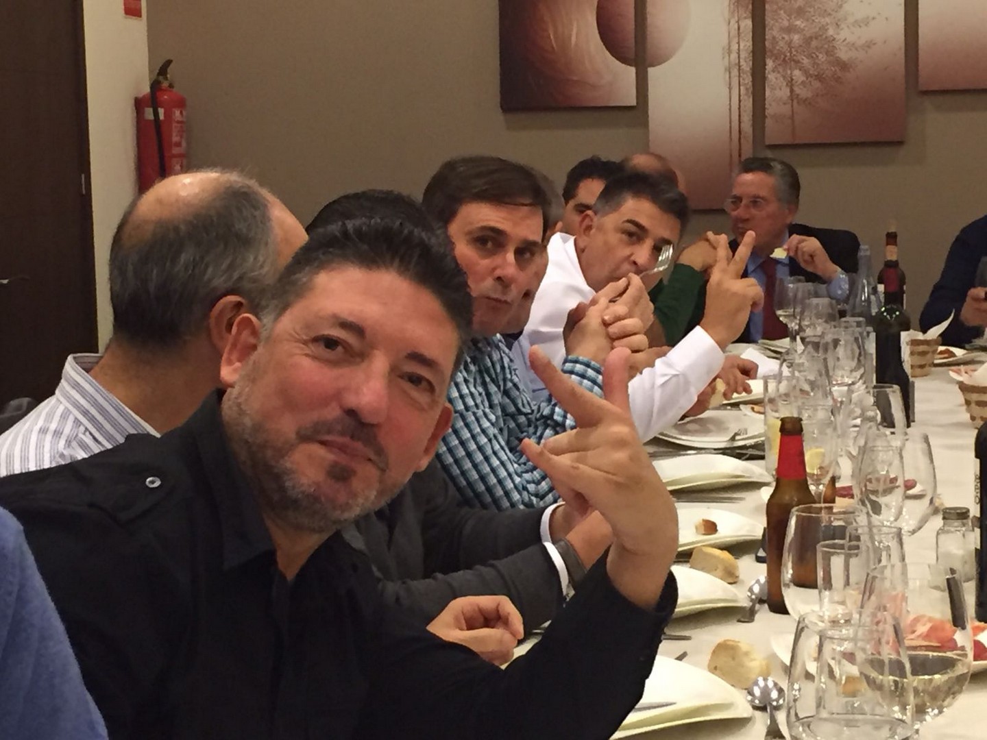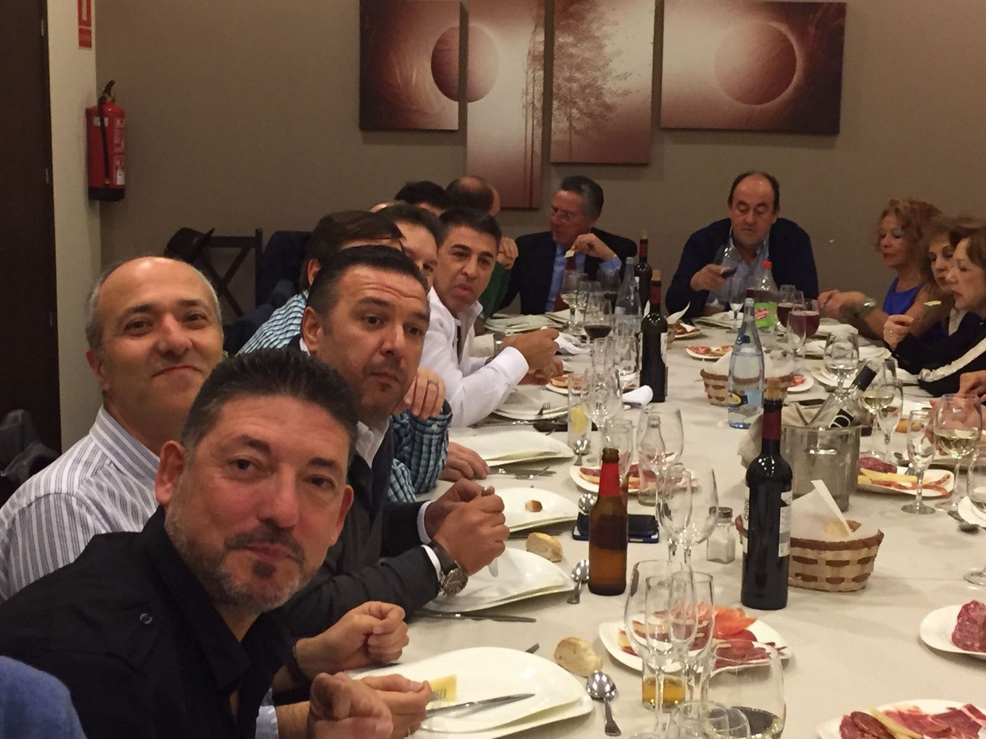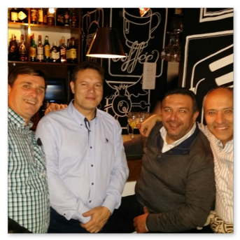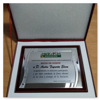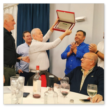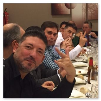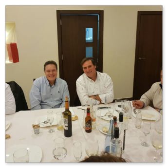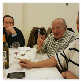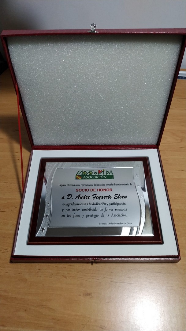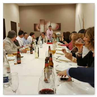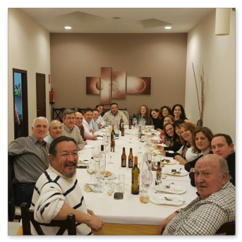 La cena más concurrida de todas las celebradas hasta ahora. Nos dimos cita 60 socios, algunos venidos de lejos. El restaurante fue el mismo del año anterior, Abakua de Almendralejo, y la disposición y organización de las mesas mucho mejor que la vez anterior. Aprovechamos la ocasión para nombrar socios de honor a Pepe Pozo y Andre Feyaerts por su merecida participación y entrega con la Asociación.