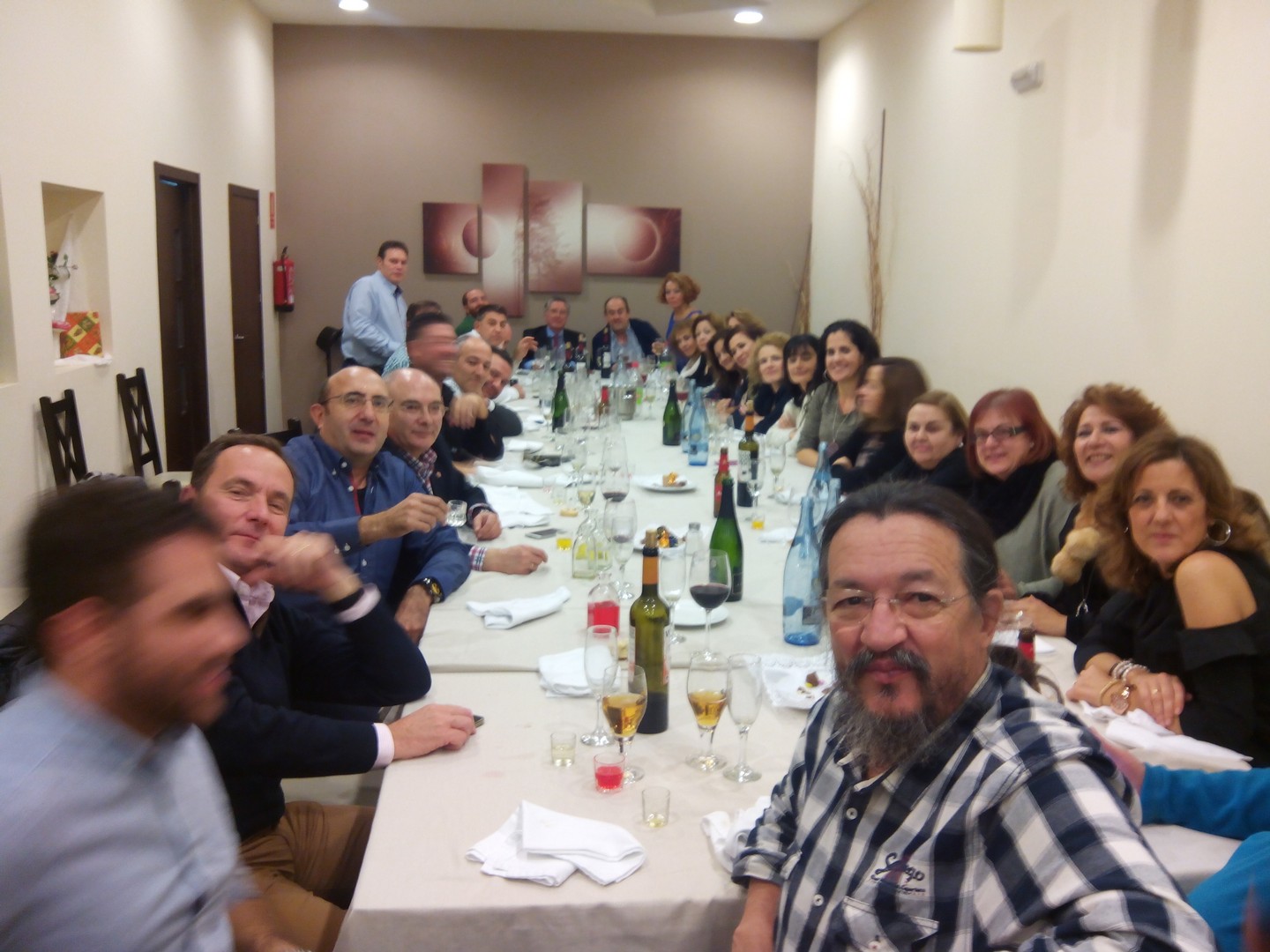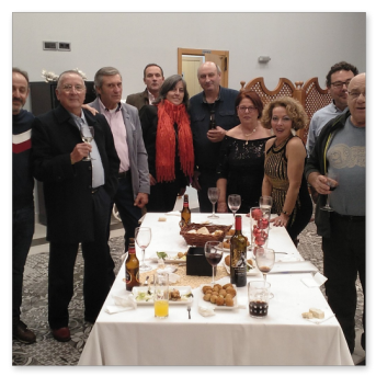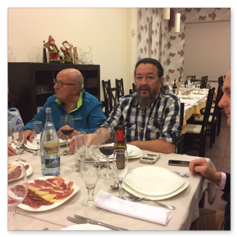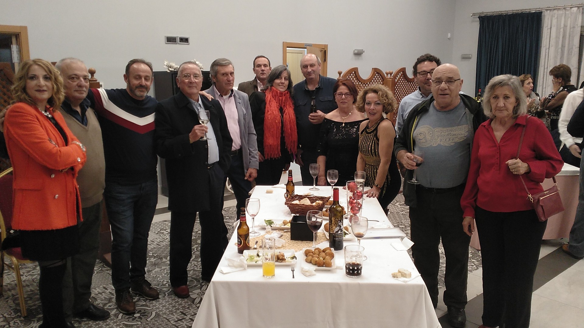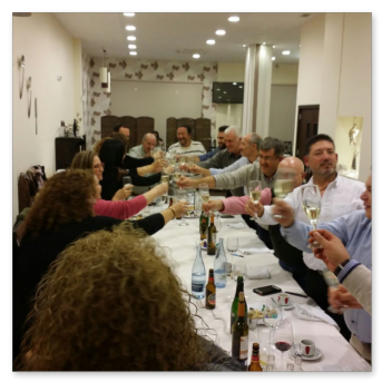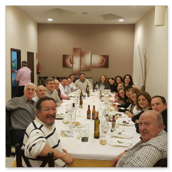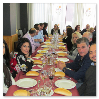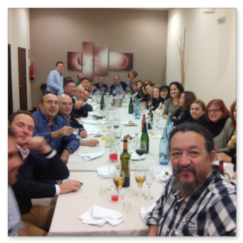 La primera comida que organizamos a nivel asociación para celebrar la navidad en buena armonía y compañerismo. Se organiza en el Rte. Monte Tapas, donde normalmente llevamos a cabo las reuniones de la asociación. La comida estuvo bien aunque muy apretados porque el local no daba para más. Después y los más aguerridos, nos fuimos de copas por los bares de moda de Mérida para seguir con la celebración.