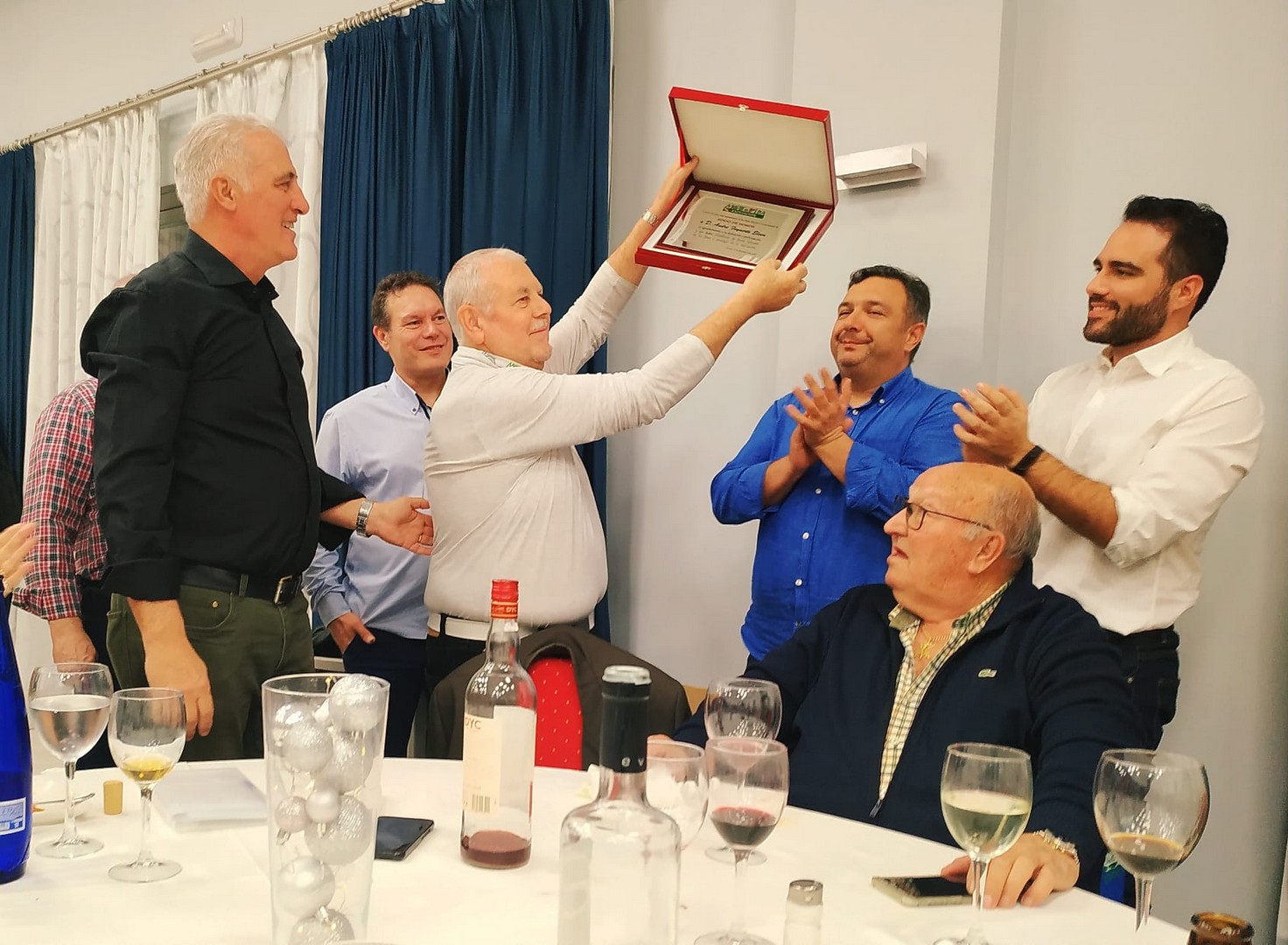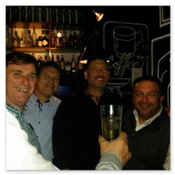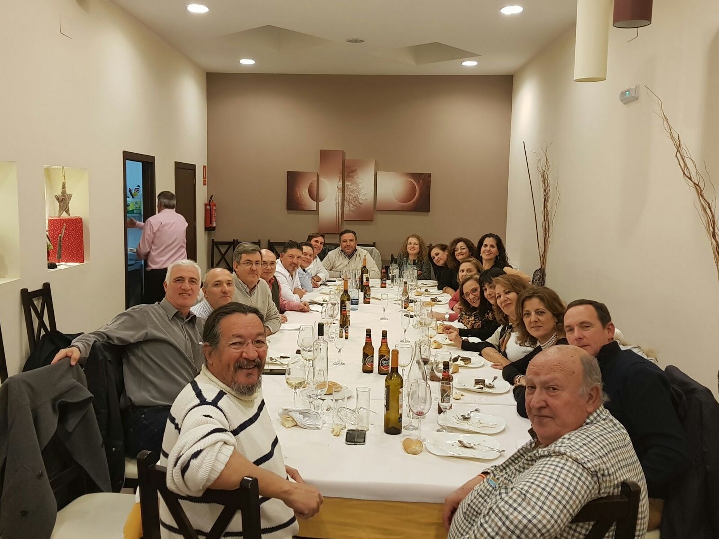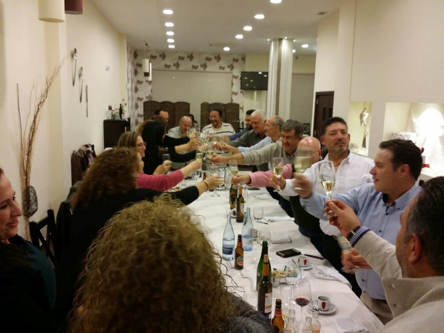 La primera comida que organizamos a nivel asociación para celebrar la navidad en buena armonía y compañerismo. Se organiza en el Rte. Monte Tapas, donde normalmente llevamos a cabo las reuniones de la asociación. La comida estuvo bien aunque muy apretados porque el local no daba para más. Después y los más aguerridos, nos fuimos de copas por los bares de moda de Mérida para seguir con la celebración.