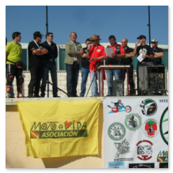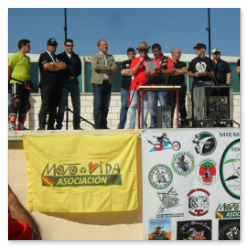 Pepe Pozo fue casi fundador, de los primeros socios, aunque escogió el 13 porque es su número favorito. Desde siempre ha sido muy participativo en todo tipo de actividades y eventos, y un excelente "relaciones públicas", conocido por muchos y querido por más. Gracias a él se nos han abierto puertas y hemos conocido personajes del motor gracias a su estrecha relación con ese mundo desde que era un joven piloto. Del otro lado tenemos a Andre, un belga afincado en España enamorado de lo nuestro, y que tras una asistencia a un Encuentro Moteros & Motoristas se quedó con nosotros. Desde entonces no se ha quedado quieto, promocionando la asociación allá donde ha ido y colaborando activamente cuando se le ha requerido, tomando las riendas de la recién creada web, y hasta hoy en día. Solidario hasta la médula, que por iniciativa propia nos involucró a todos para ser padrinos de Guille. También gracias a él pudimos cambiar de aire y celebrar el Encuentro en Málaga, que junto a su esposa Helena, una maravillosa y entusiasta portuguesa españolizada que le acompañó en todo momento, organizaron los mejores Encuentro Moto y Vida hasta el momento, fruto de la entrega y la pasión de ambos.