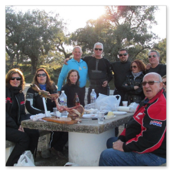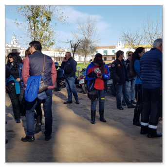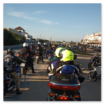 Un año más preparamos las motos, la viandas y nuestro espíritu aventurero para poner rumbo sur hacia la aldea del Rocío y unirnos con nuestros socios que vienen de la parte de Málaga, Sevilla y Huelva para homenajear todos juntos en la Ermita de la Blanca Paloma el recuerdo de todos aquellos familiares, amigos y compañeros fallecidos en la carretera, y cantar una salve en su honor con la piel erizada y lagrimas en los ojos. Pura emoción, os lo puedo asegurar. Después y para cambiar de emociones, nos vamos a la alameda para compartir comida y bebida en buena armonia alrededor de una hoguera hasta que el cuerpo aguante.