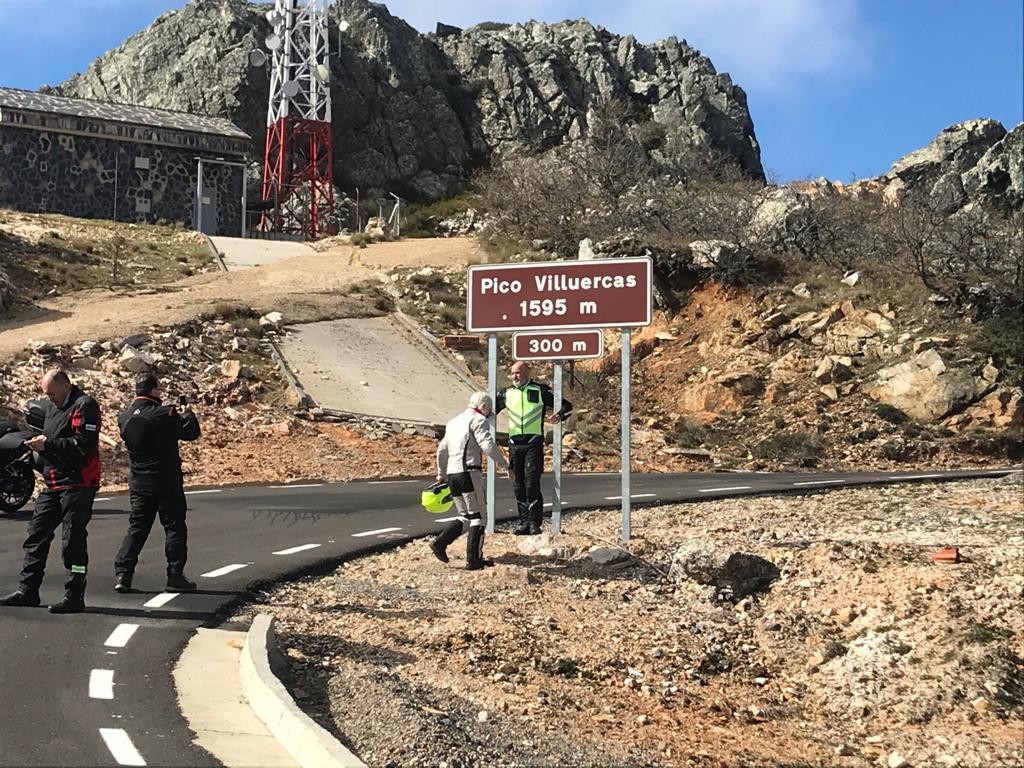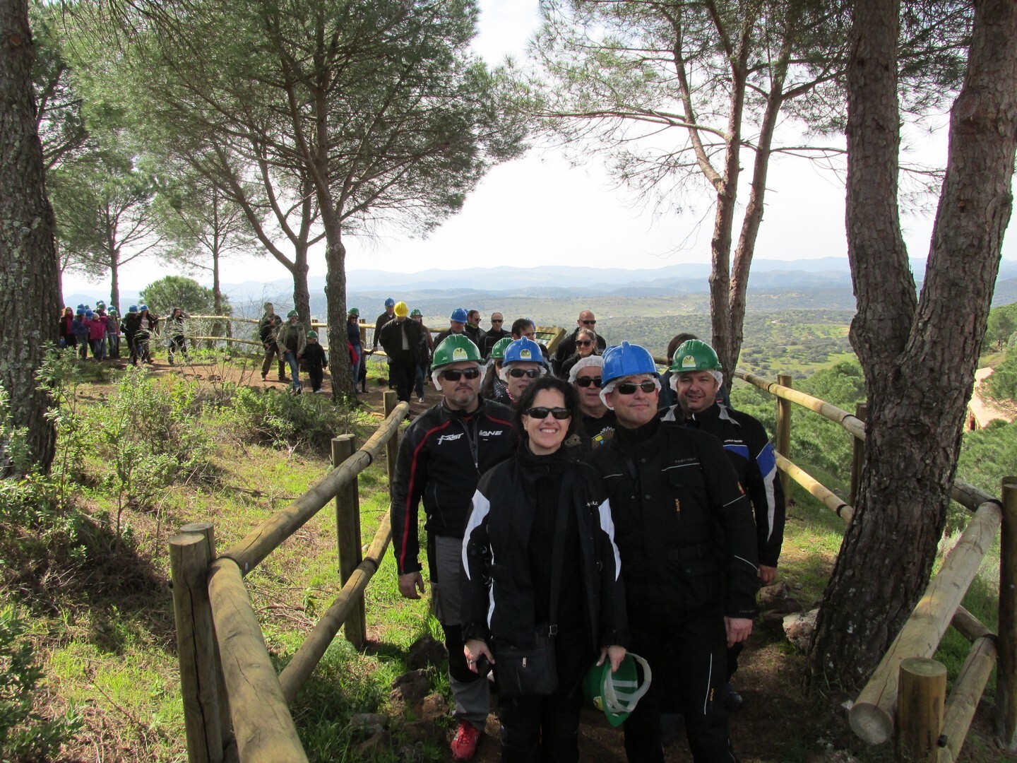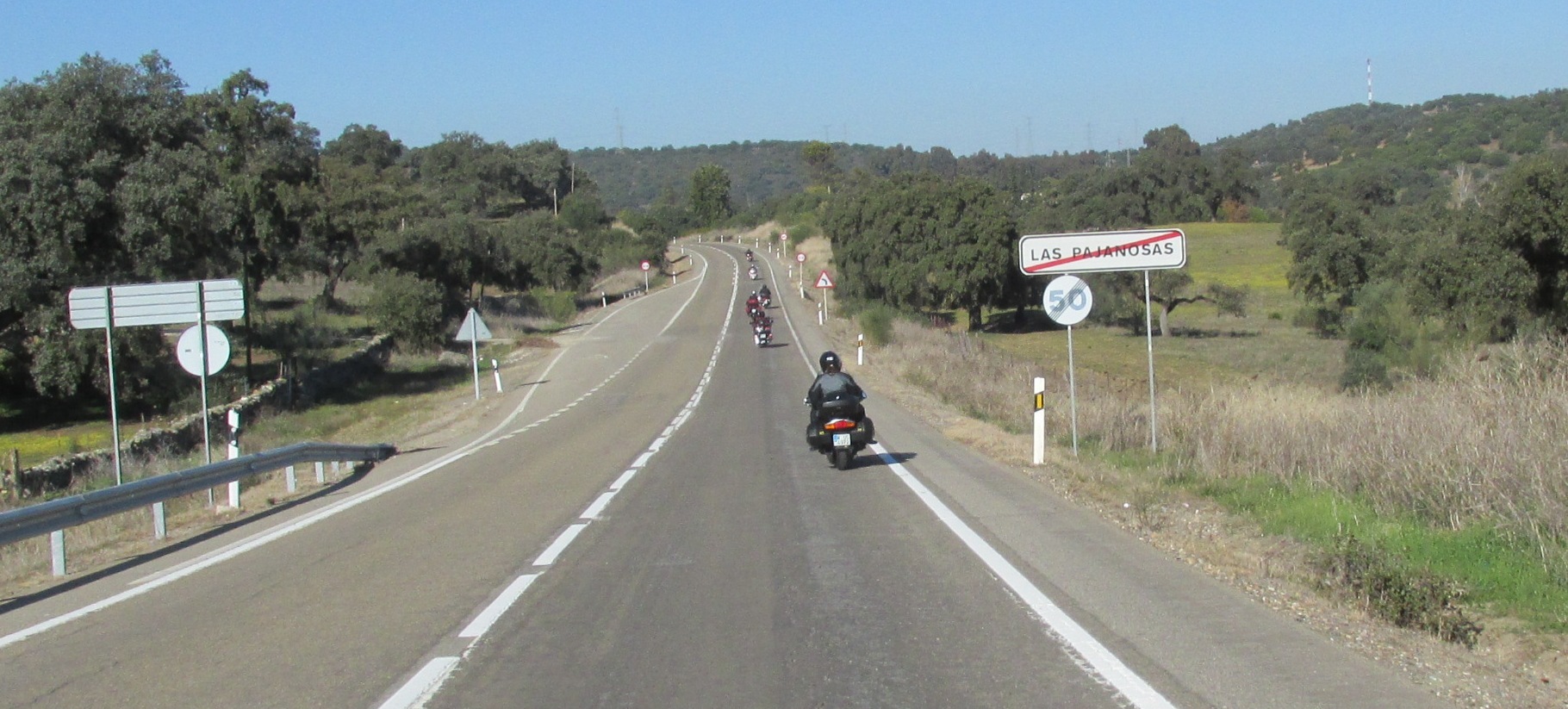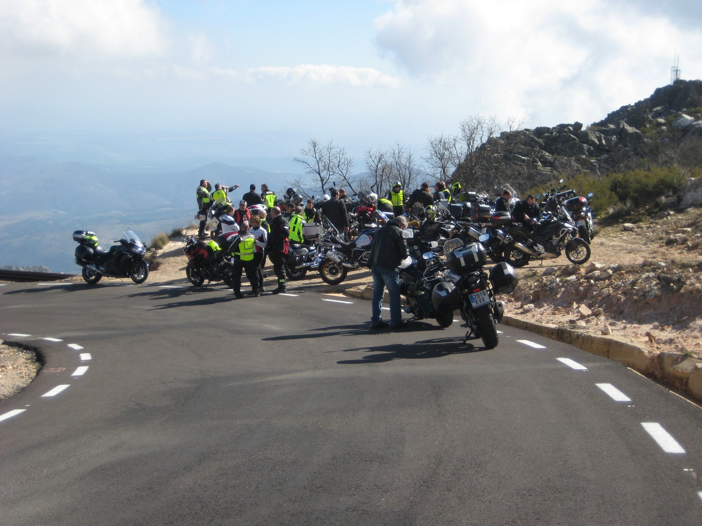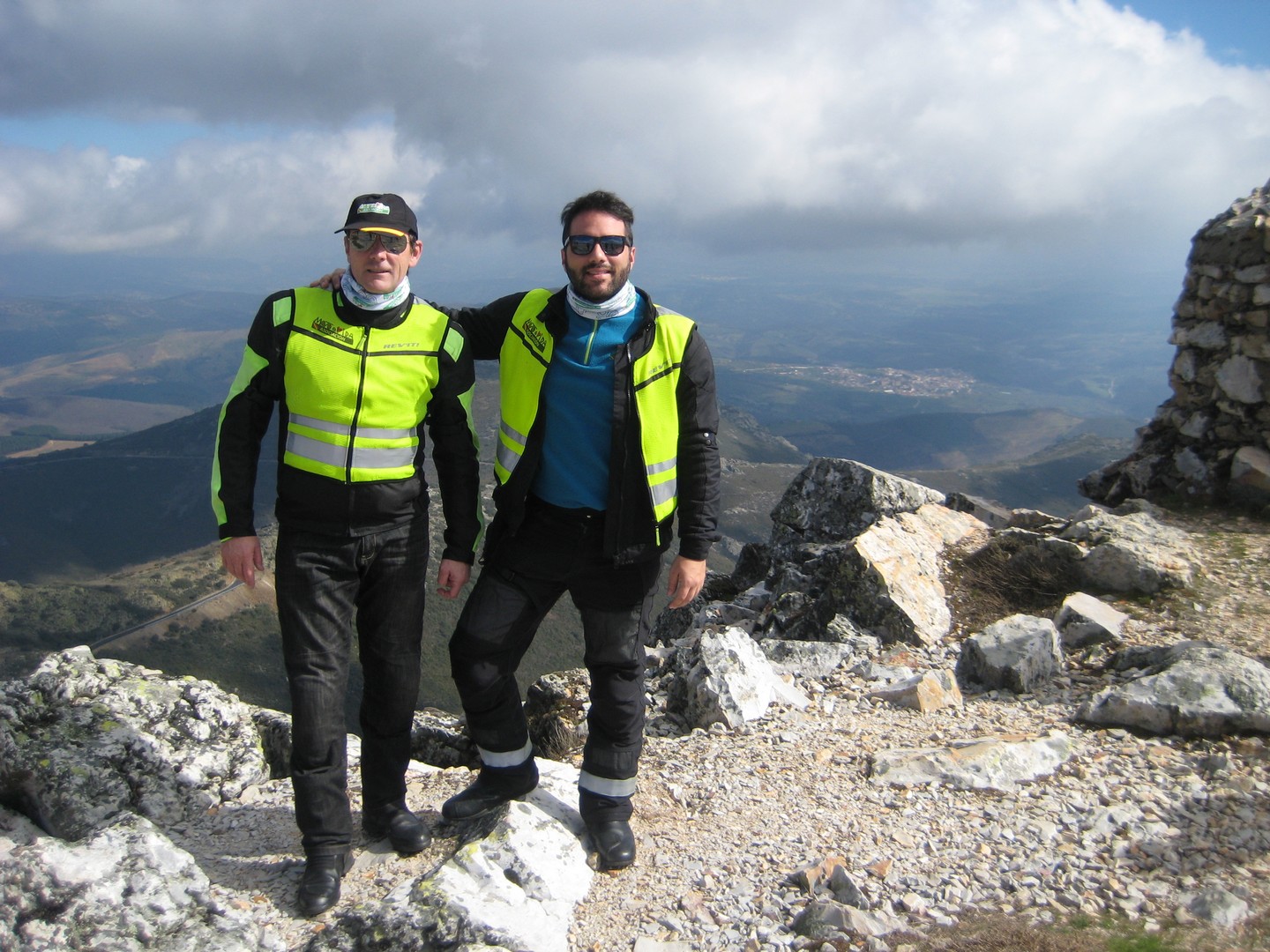Por fin, después de dos intentos fallidos por la climatología, hemos podido llevar a cabo la ruta, y os aseguro que ha merecido la pena esperar. Hasta el café en Logrosán, nada que reseñar, una ruta de puro trámite, pero a partir de ahí todo cambió. Ya en Cañamero el cartel en el mismo desvío era buen augurio "Ruta paisajista" decía, y no se equivocaba. El asfalto en buen estado, las trazadas divertidas, los paisajes (el que te dejaba ver las pocas rectas) extraordinarios y así muchos kilómetros. Pedro y Amador nos sugirieron subir al pico de la Villuercas, a casi 1600 metros de altura, ¡Una pasada de vistas! mientras subías por una carretera recién asfaltada y desde arriba en la cima. Comimos muy bien en el Rte. Ximénez, en la misma travesía de Cañamero.