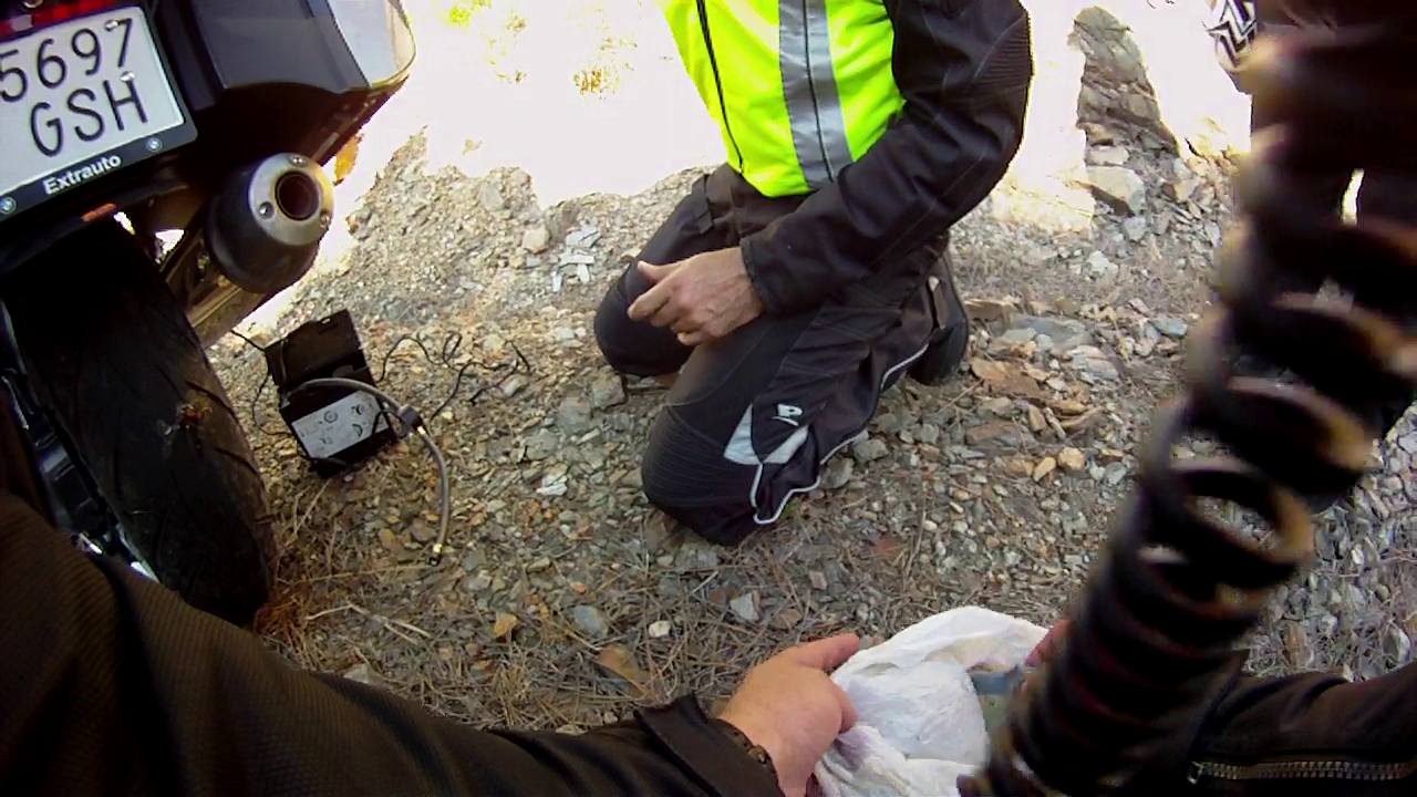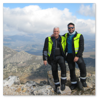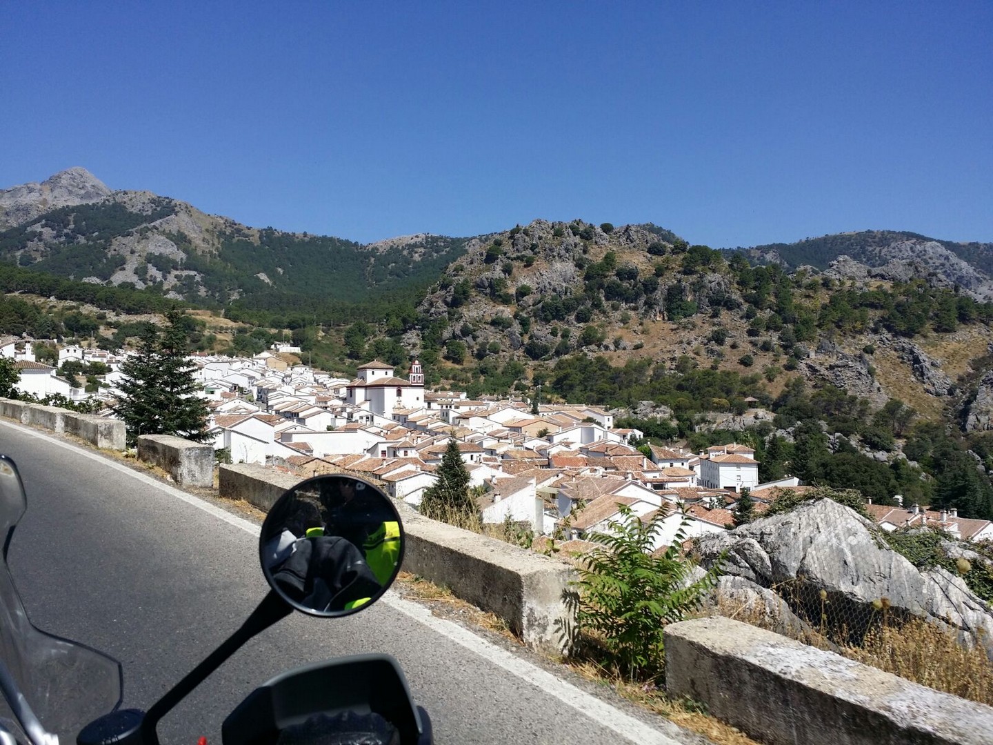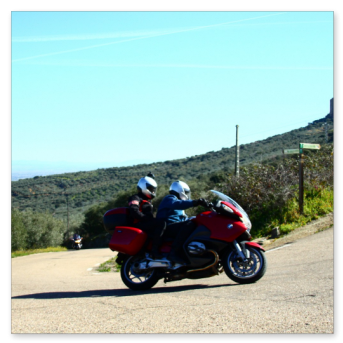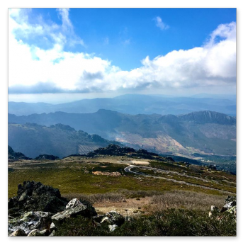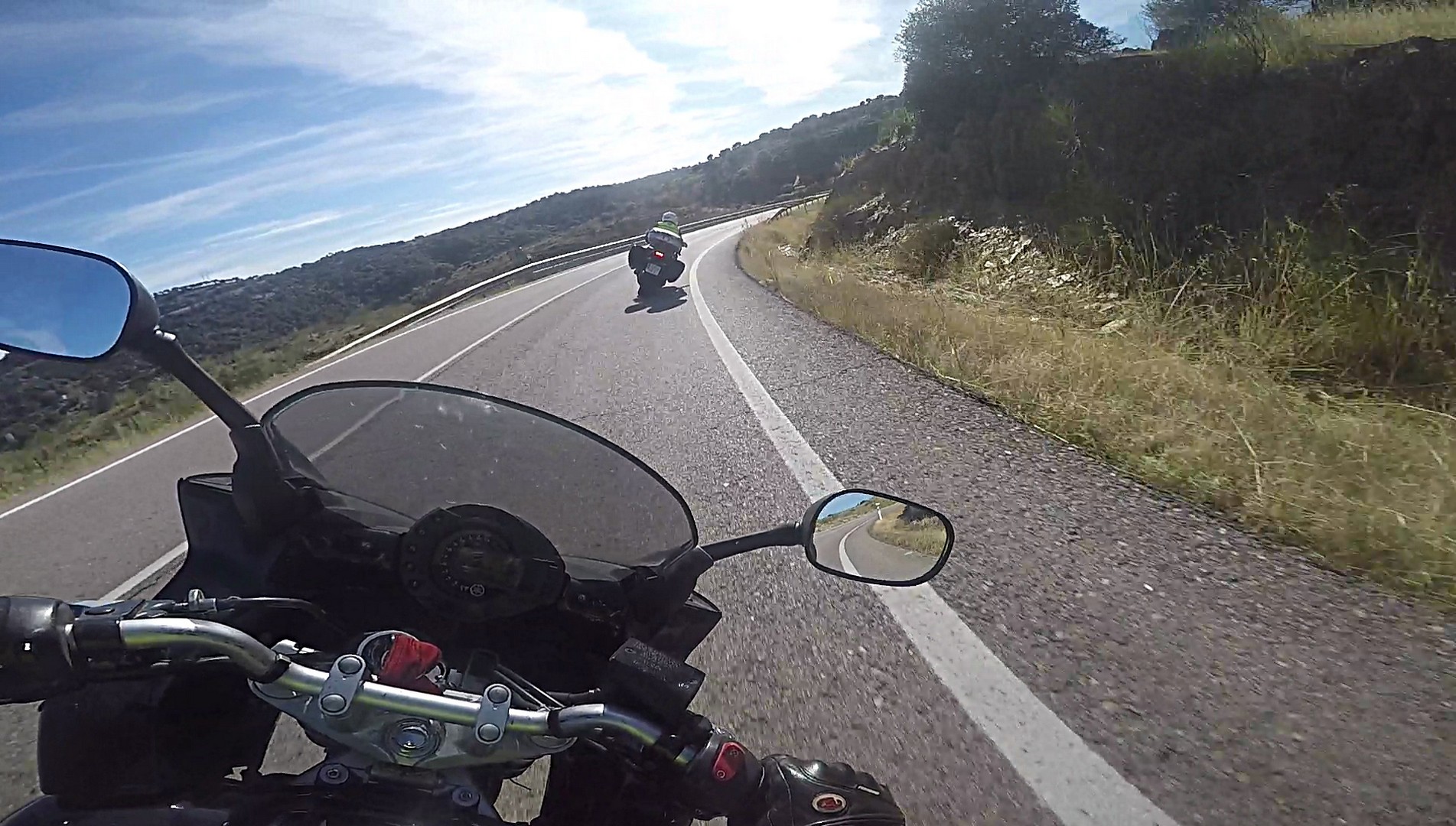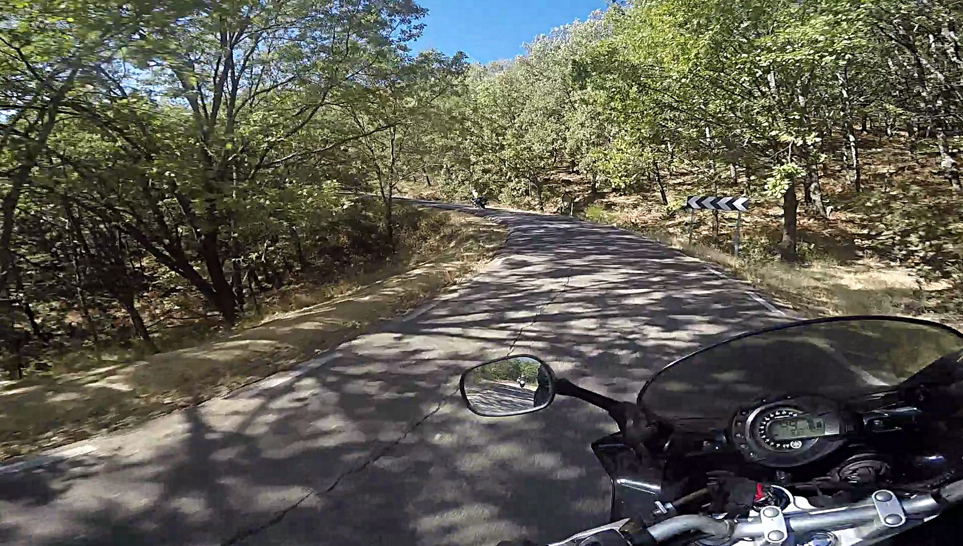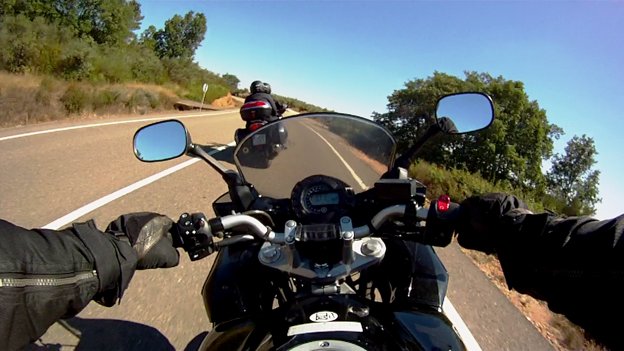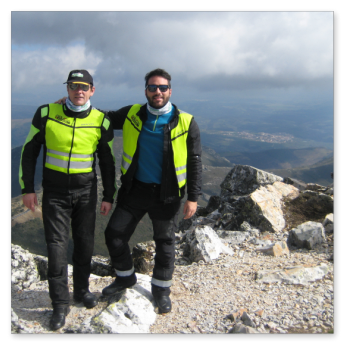 Por fin, después de dos intentos fallidos por la climatología, hemos podido llevar a cabo la ruta, y os aseguro que ha merecido la pena esperar. Hasta el café en Logrosán, nada que reseñar, una ruta de puro trámite, pero a partir de ahí todo cambió. Ya en Cañamero el cartel en el mismo desvío era buen augurio "Ruta paisajista" decía, y no se equivocaba. El asfalto en buen estado, las trazadas divertidas, los paisajes (el que te dejaba ver las pocas rectas) extraordinarios y así muchos kilómetros. Pedro y Amador nos sugirieron subir al pico de la Villuercas, a casi 1600 metros de altura, ¡Una pasada de vistas! mientras subías por una carretera recién asfaltada y desde arriba en la cima. Comimos muy bien en el Rte. Ximénez, en la misma travesía de Cañamero.