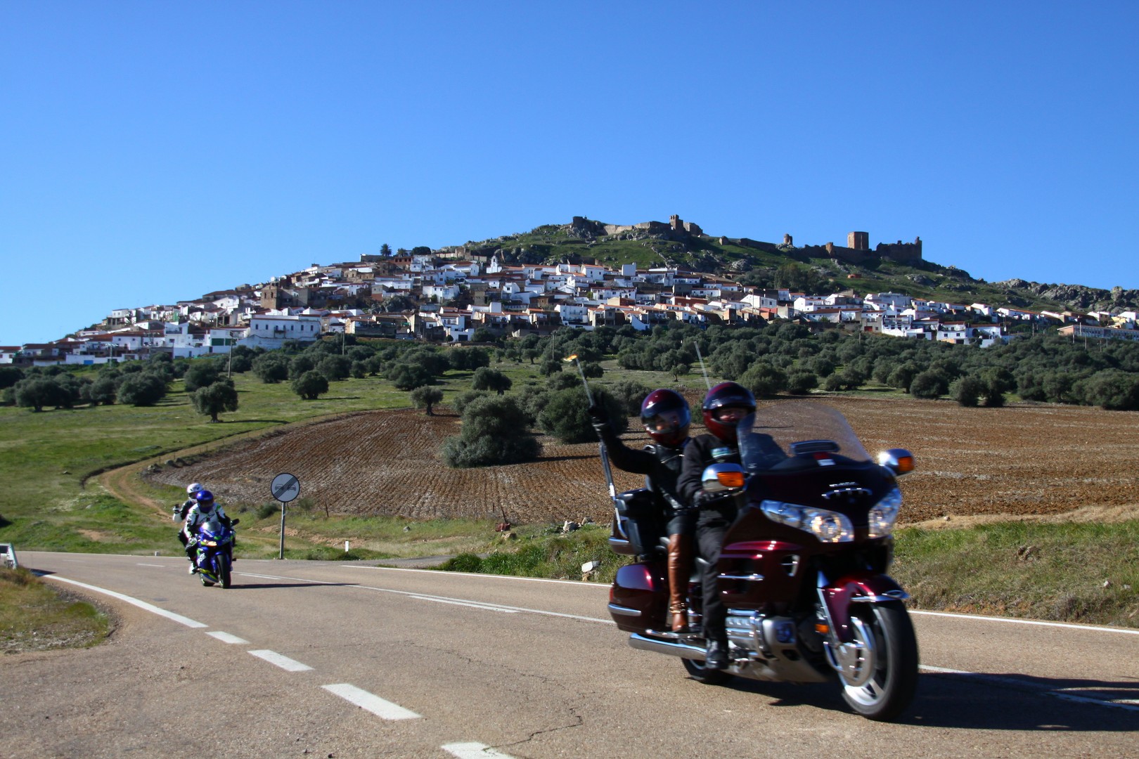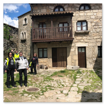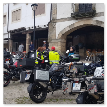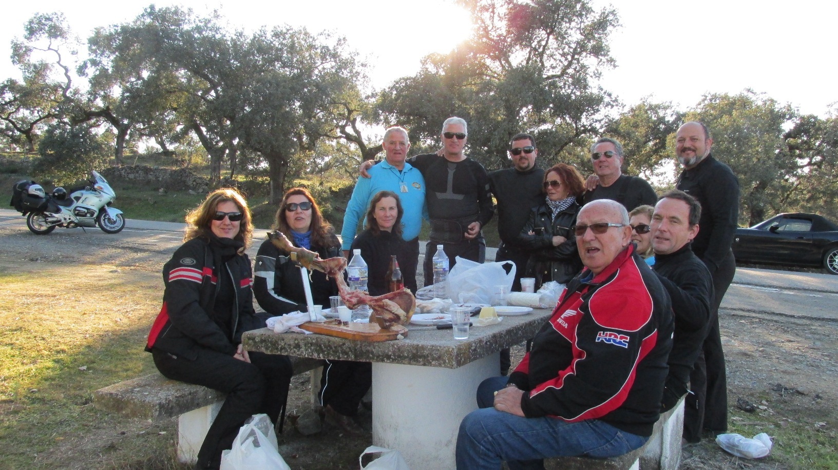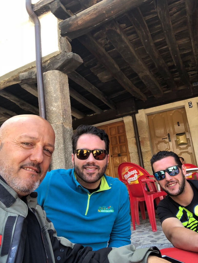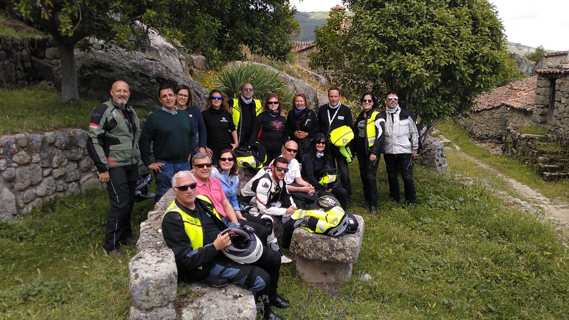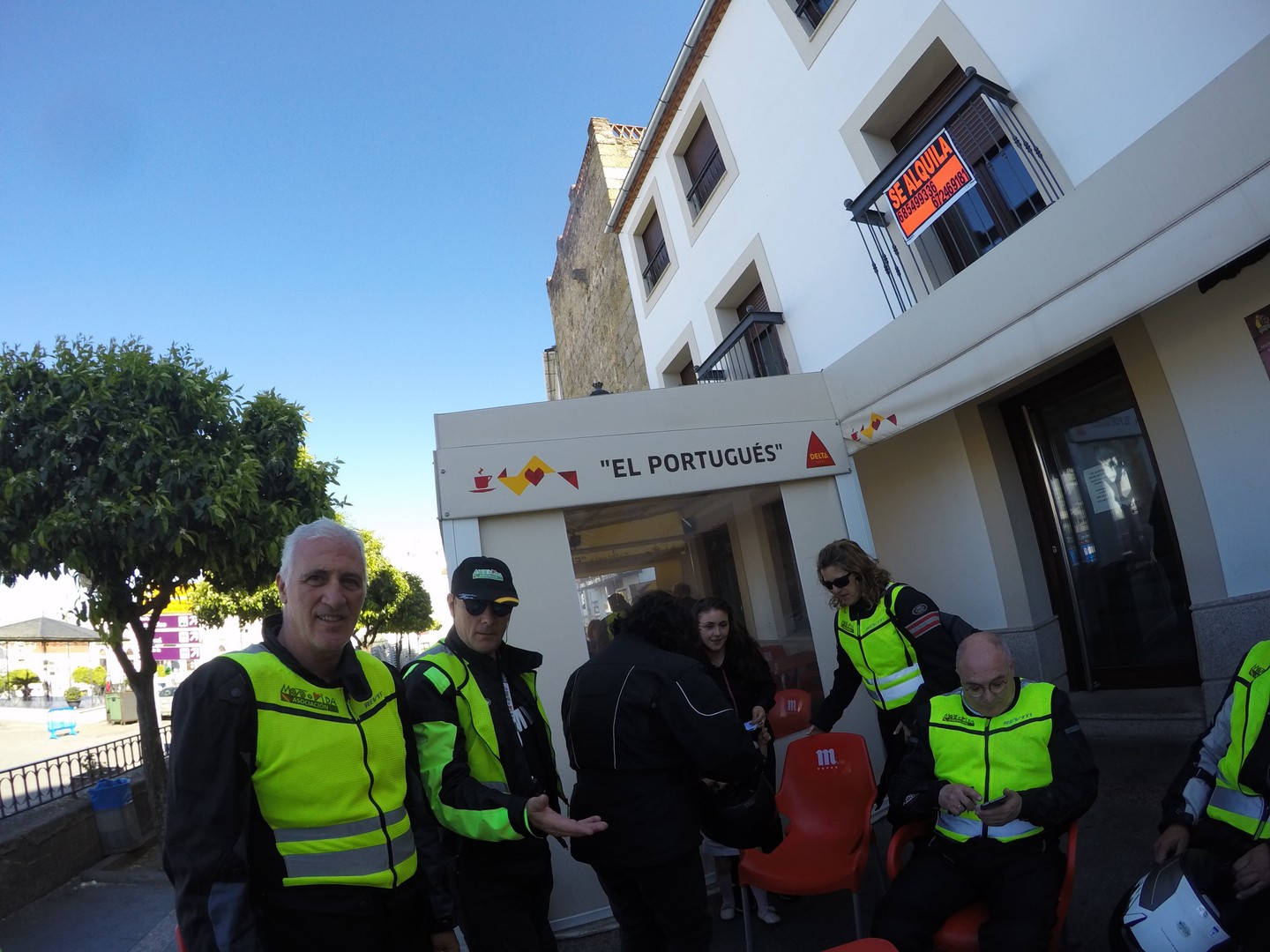 Salimos de Mérida y la primera parada la hicimos en Garrovillas de Alconétar para visitar la mayor plaza porticada de España. Tras el café, iniciamos la ruta para dirigirnos a Portugal pasando por el majestuoso puente de Alcántara. Ya en Portugal, hicimos otra parada para visitar Idanha a Velha un pueblo que merece la pena ver. En Sabugal llegamos tarde para visitar el castillo por el despiste del cambio horario, así es que lo vimos por fuera y después a comer en el Rte. El Dorado en Fóios. Tras la comida, iniciamos la marcha de vuelta bajando desde Navasfrías a Valverde del Fresno por una carretera de vértigo y recién asfaltada. Disfrute total.