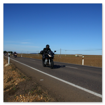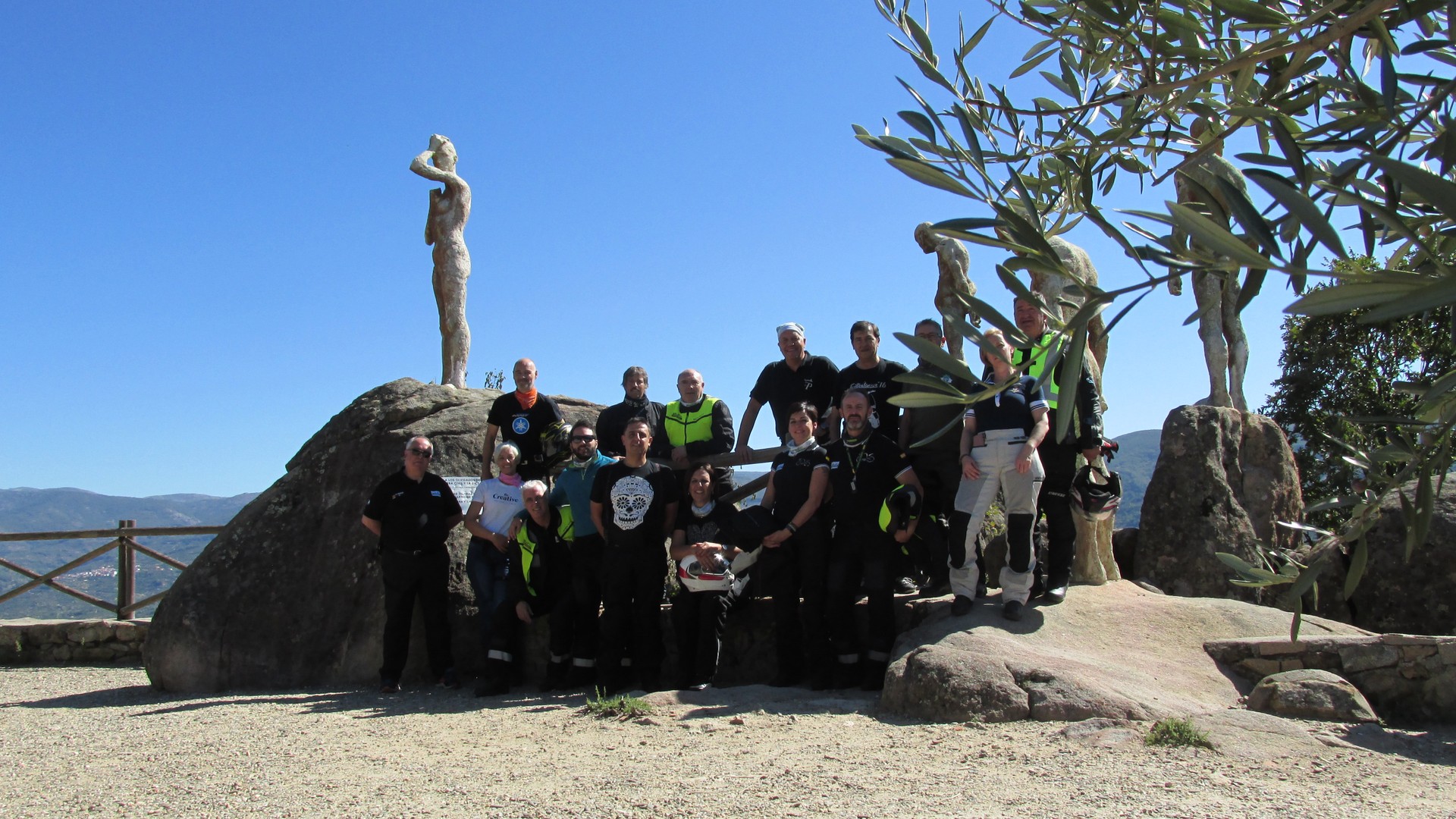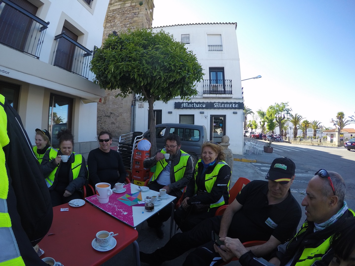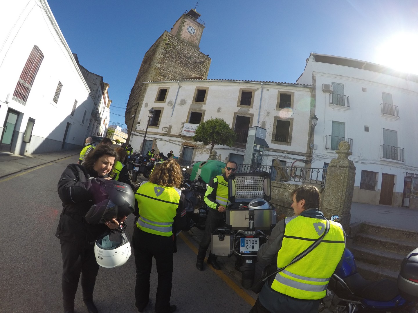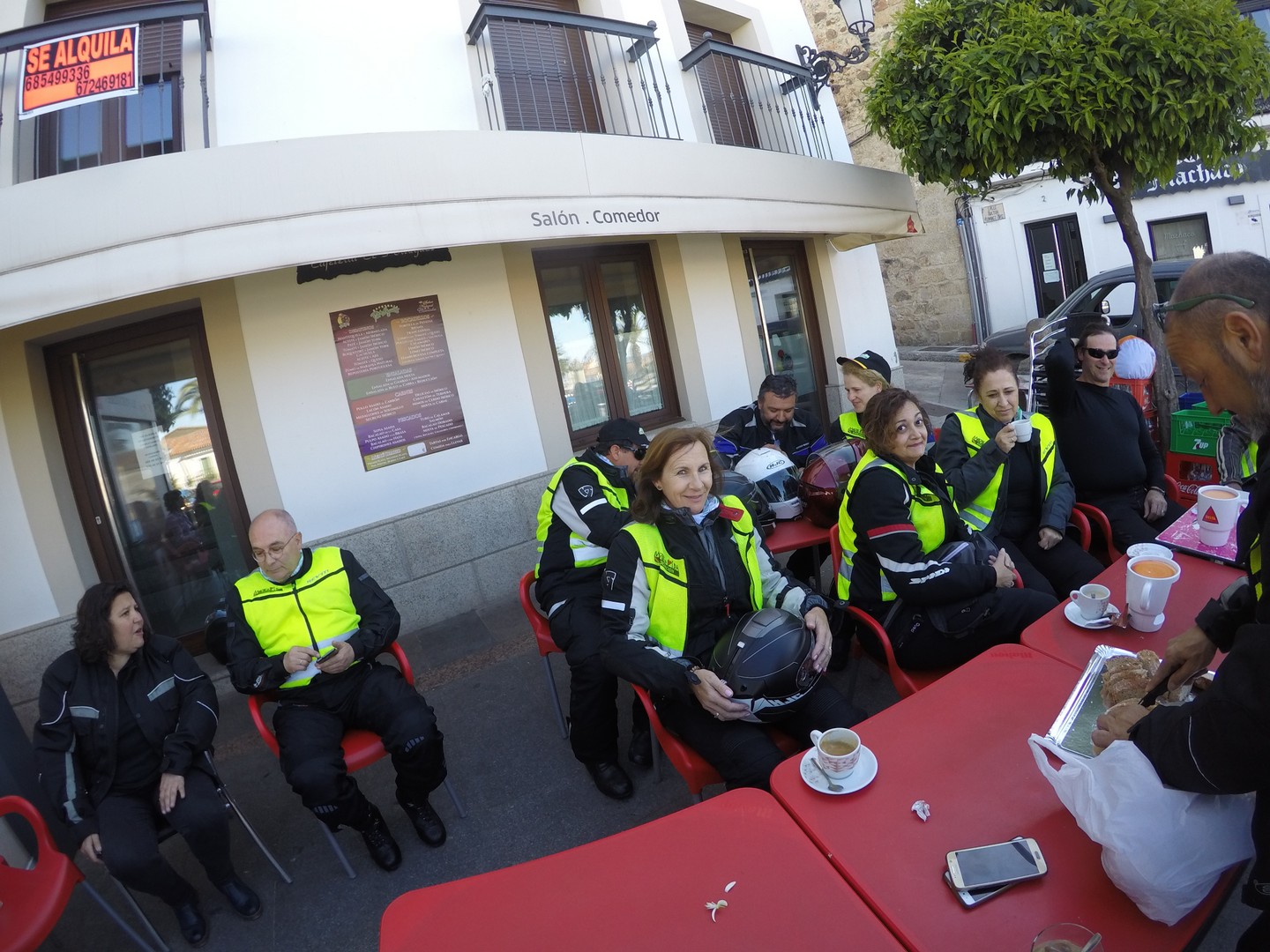 Salimos de Mérida y la primera parada la hicimos en Garrovillas de Alconétar para visitar la mayor plaza porticada de España. Tras el café, iniciamos la ruta para dirigirnos a Portugal pasando por el majestuoso puente de Alcántara. Ya en Portugal, hicimos otra parada para visitar Idanha a Velha un pueblo que merece la pena ver. En Sabugal llegamos tarde para visitar el castillo por el despiste del cambio horario, así es que lo vimos por fuera y después a comer en el Rte. El Dorado en Fóios. Tras la comida, iniciamos la marcha de vuelta bajando desde Navasfrías a Valverde del Fresno por una carretera de vértigo y recién asfaltada. Disfrute total.