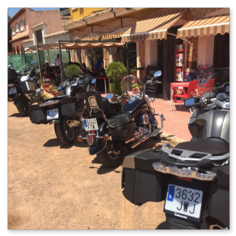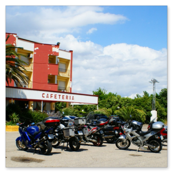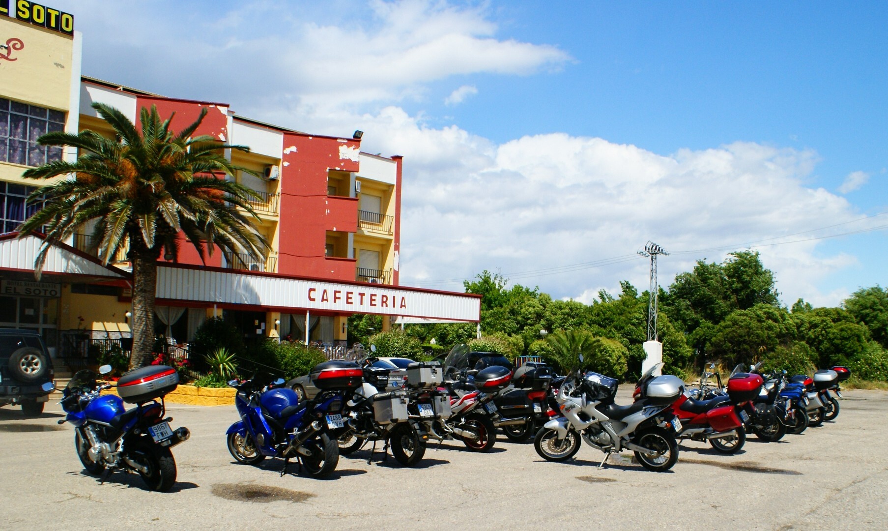 En nuestro empeño de buscar una fórmula adecuada de alojamiento, este año hemos conseguido que un Hotel abra para nosotros en el mismo Matalascañas. El año anterior ya cambiamos de ubicación, en vez de dormir en la Aldea del Rocío lo hicimos en Matalascañas, un acierto pleno, aunque no así el alojamiento, por ello, este año hemos buscado más insistentemente. La verdad es que hemos estado muy bien, y las motos también. El desayuno muy completo y bien servido. Vamos mejorando poco a poco. Este año también hemos utilizado el transporte público en vez de taxi. Un ahorro considerable. El ocio nocturno en Matalascañas merece la pena alojarse aquí.